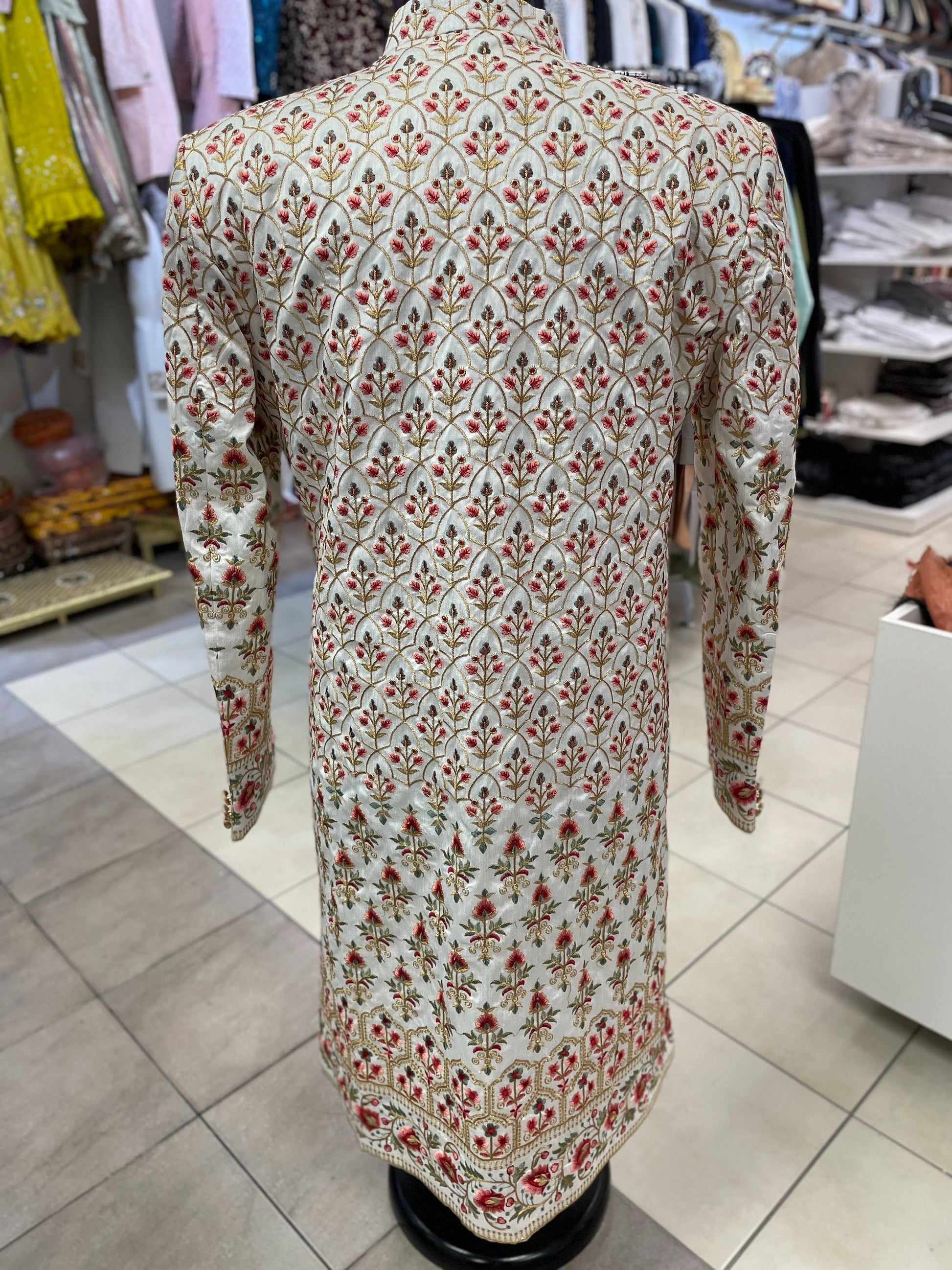 Groom Wedding Sherwani Outfit- White Multi Coloured Indo Western Coat (Sherwani) With Embroidery