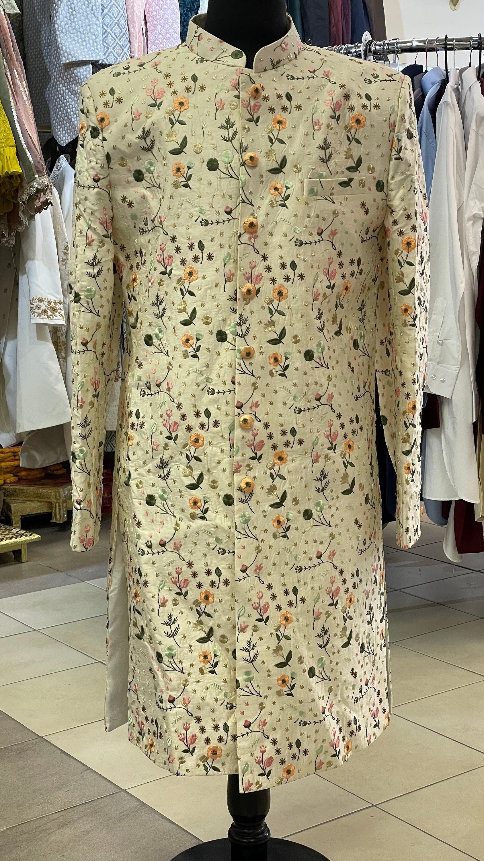 Groom Wedding Sherwani Outfit- White Multicolored Indo Western Coat (Sherwani) With Embroidery